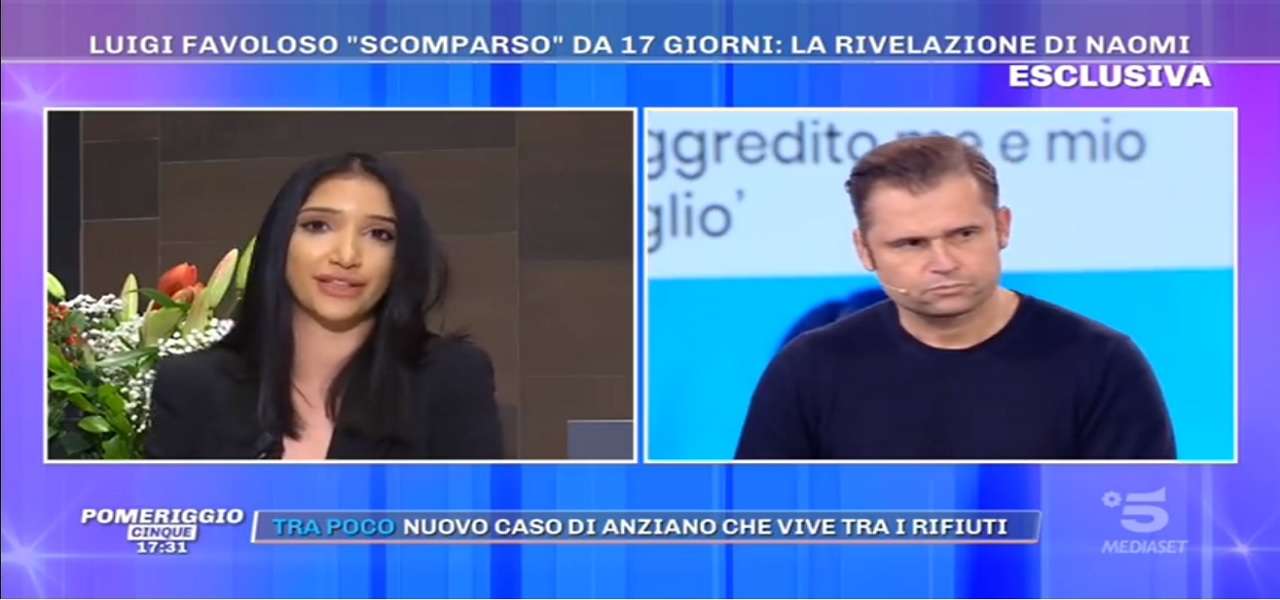 Si susseguono testimonianze e rivelazioni su Luigi Mario Favoloso che continua a risultare scomparso e irraggiungibile. Dopo che la madre ha ritirato la denuncia di scomparsa e che Nina Moric lo ha accusato di violenza su lei e suo figlio, arriva anche la testimonianza di Naomi, ragazza che Favoloso avrebbe conosciuto qualche tempo fa e alla quale avrebbe fatto alcune dichiarazioni molto personali. In diretta a Pomeriggio 5, Naomi infatti racconta il loro primo incontro: “Appena conosciuti, si è avvicinato e ha raccontato subito i suoi problemi con Nina.” ammette la ragazza, che aggiunge “Mi ha anche raccontato di aver avuto altri flirt con altre donne… non ho capito in che situazione fosse, mi ha fatto anche i nomi e cognomi, persone note, che conosci anche molto bene.”, ha poi detto a Barbara D’Urso.