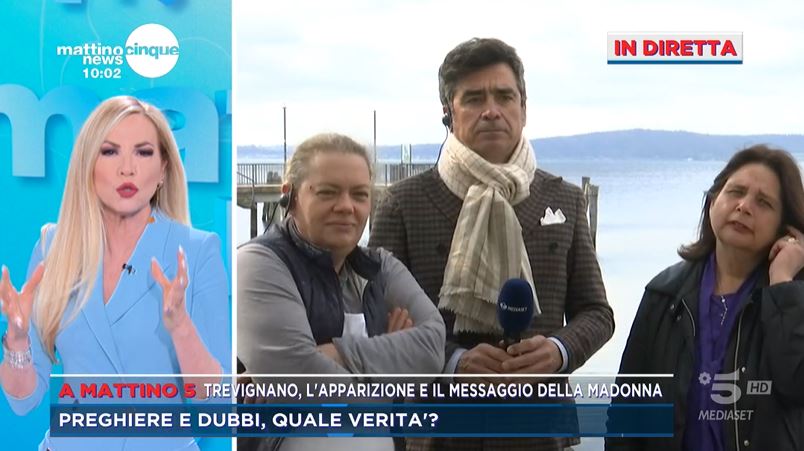Tutti gli ultimi aggiornamenti sull’apparizione della Madonna di Trevignano e della veggente Gisella negli studi del programma di Canale 5, Mattino Cinque News. Puntata alquanto esplosiva quella di oggi, con una serie di scoop da parte del talk condotto da Federica Panicucci. Si parte con l’investigatore privato, Andrea Cacciotti, intervistato dal programma Mediaset, che ha svelato: “Abbiamo avuto mandato da alcuni fedeli di Trevignano su presunti reati in corso, pensiamo della signora Gisella. Abbiamo preparato una regolare denuncia che presenteremo ai carabinieri, c’è qualcosa che non va, stiamo verificando dei soldi versati. Io sono un investigatore privato regolare”.