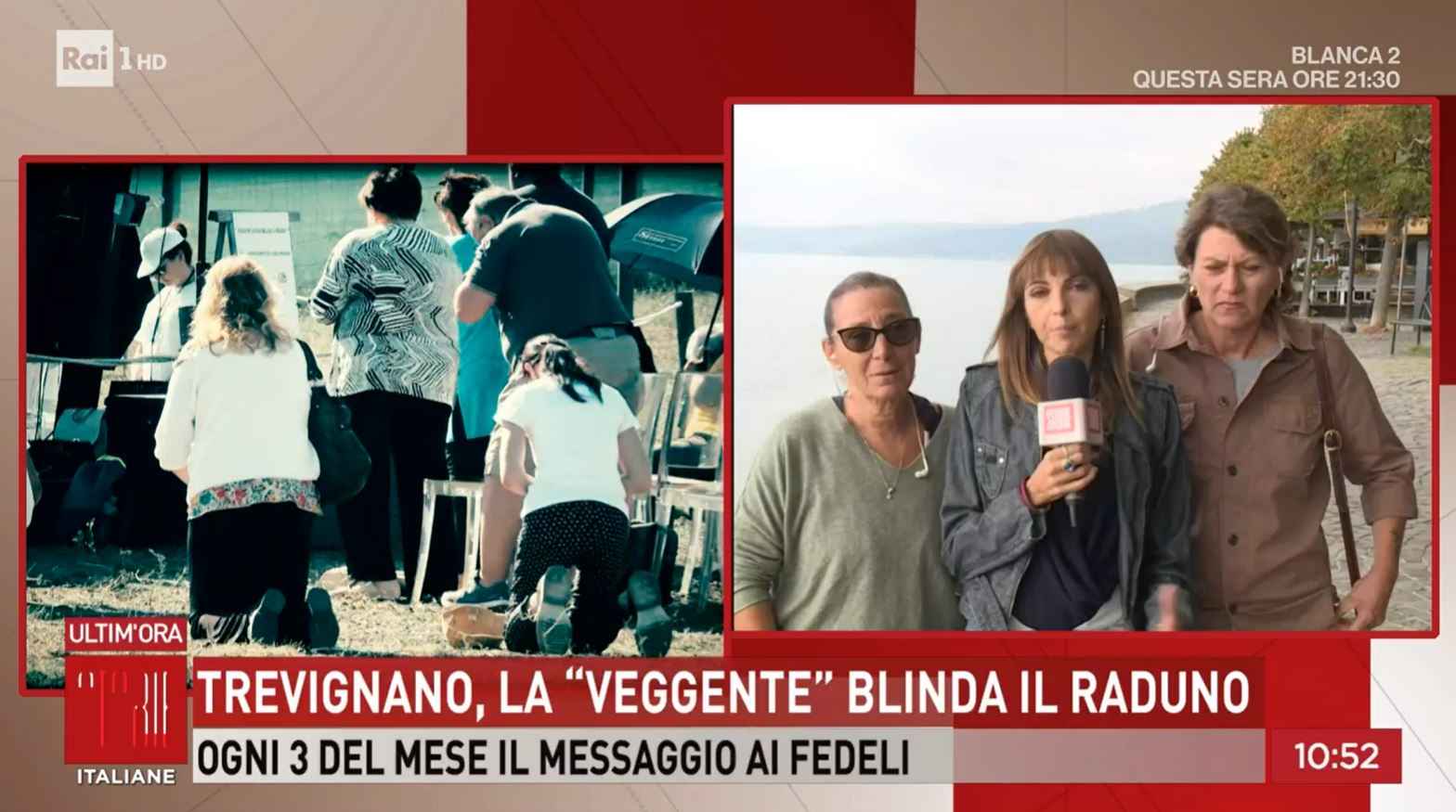 Il programma di Rai Uno, Storie Italiane, è tornato ad occuparsi del caso della Madonna di Trevignano, le apparizioni della veggente Gisella. Il 3 ottobre, come da programma, è arrivato il messaggio della Madre di Gesù, e sono state diverse le persone, giunte da tutta Italia, che si sono recate presso la collina delle apparizioni. Roberta Spinelli, in collegamento da Trevignano, ha spiegato: “Il 3 eravamo presenti, siamo andati a casa di Gisella e in località Campo delle Rose. Gisella è arrivata molto presto per non avere l’incontro con i giornalisti. C’era lo zoccolo duro di fedeli, quelli che credono alla veggente, abbiamo provato a chiedere di bilanci, donazioni e abbiamo avuto la conferma che esistono le donazioni, e che questi soldi vengono utilizzati per migliorare il campo delle rose anche se lo statuto non viene previsto”.