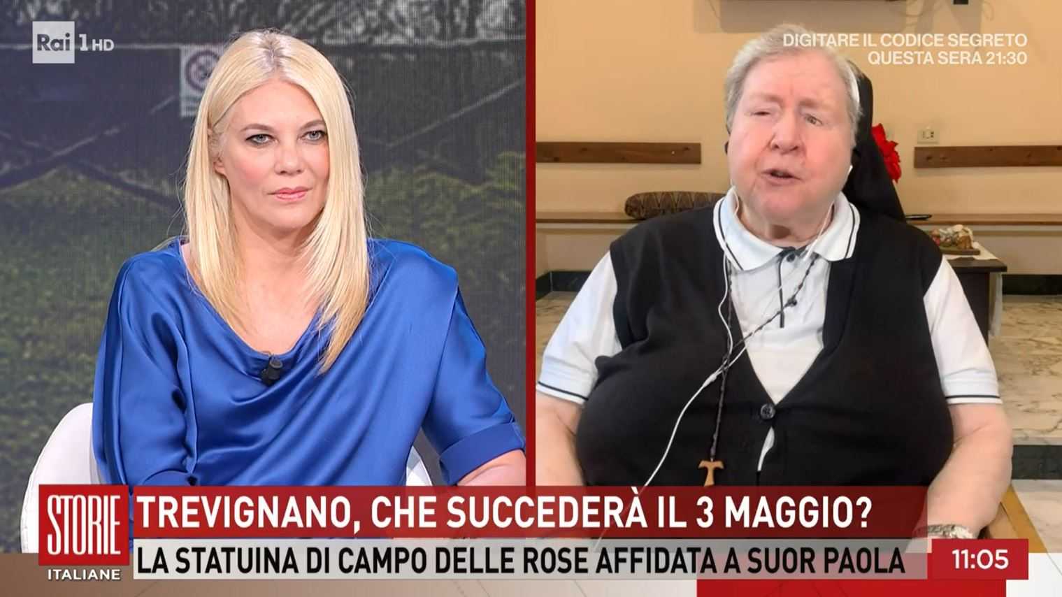 Storie Italiane torna a trattare il caso della Madonna di Trevignano, sottolineando come la statua acquistata dall’ex fedele Luigi Avella, che si trovava al Campo delle Rose, sia stata donata a suor Paola: “Se il signor Avella ha fatto una denuncia – le parole di Solange Marchignoli, legale della sedicente veggente Gisella – presume che ci sono dei reati, noi comunque non ne sappiamo nulla”.