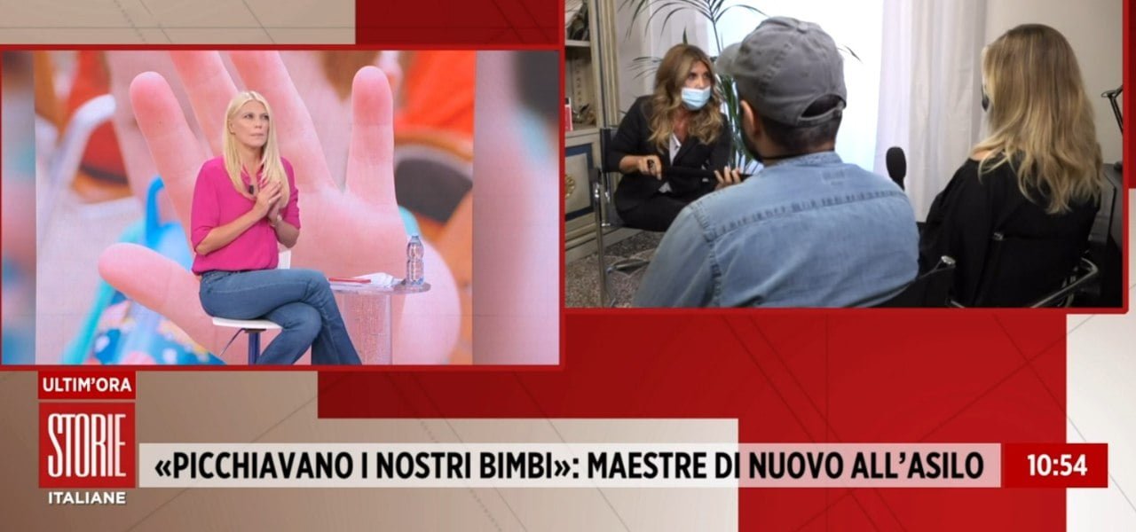 A “Storie Italiane”, trasmissione di Rai Uno condotta da Eleonora Daniele, si è parlato, nella puntata di oggi, giovedì 30 settembre 2021, delle maestre che picchiavano e vessavano i bambini presso un asilo di Roma. La notizia, infatti, è che, dopo sei mesi di sospensione, le insegnanti sono state autorizzate a tornare al lavoro presso un altro plesso della stessa scuola. Una vicenda raccontata da Carla Lombardi, inviata del programma: “Nel 2019 le mamme di questi bambini piccolissimi si accorsero che i loro figli che frequentavano la scuola dell’infanzia avevano comportamenti particolari. Piangevano, usavano un linguaggio diverso, urlavano la notte, avevano gli incubi e non volevano più andare a scuola. I carabinieri hanno installato le telecamere nell’edificio, riprendendo così insulti, schiaffi, vessazioni e umiliazioni, anche psicologiche”.