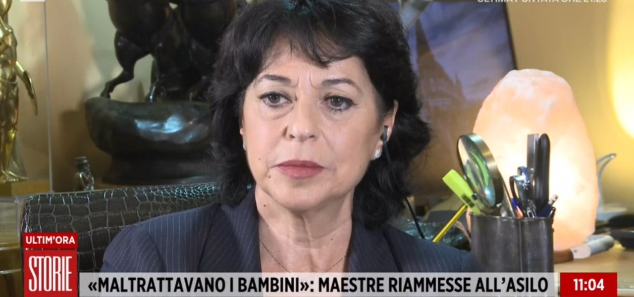 Il caso dei maltrattamenti sui bambini da parte di due maestre in servizio presso un asilo di Roma è stato approfondito nella puntata odierna della trasmissione di Rai Uno “Storie Italiane”. Nel salotto televisivo di Eleonora Daniele è intervenuta in collegamento audiovisivo la preside della scuola, Filomena Barbato, in compagnia del suo legale difensore: “Sono qui per manifestare vicinanza ai genitori degli alunni ed è per questo motivo anche che mi sono costituita parte civile. Un fatto deprecabile, gravissimo, che ha causato tante dolore in me, innanzitutto, ma anche in tanti docenti che lavorano con passione e professionalità nel nostro istituto”.