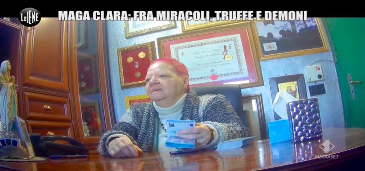 Uno dei servizi de Le Iene fu realizzato da Nina Palmieri, che nel 2019 si recò da Maria Clara Romano per dimostrare che continuava a promettere guarigioni miracolose, anche da malattie gravi e possessioni, sempre in cambio di denaro. Alcuni complici del programma si finsero malati o con problemi: a loro maga Clara consigliò di lasciare le cure mediche in favore dei suoi riti, a pagamento, ma quando l’inviata provò a smascherarla, lei e l’operatore vennero trattenuti, così chiesero l’intervento dei carabinieri.
