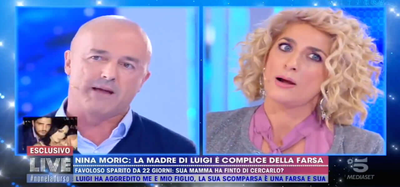 “Se lei va dalle forze dell’ordine le dicono quello che hanno detto a noi”, è questa la provocazione di Gianluigi Nuzzi nei confronti della mamma di Luigi Favoloso, ospiti a Live – Non è la d’Uro. La donna è stata accusata di aver costruito tutta la farsa, una cosa che andrebbe a screditare il lavoro di coloro che invece lavorano per cercare le persone che spariscono realmente. “Quando è sparito lei ha fatto la denuncia, ma la procura ha detto che era una fuga volontaria”, spiega il conduttore “Adesso la cosa prende un altro livello. La Moric accusa di reato compiuto da Favoloso. Se la Nina Moric ha denunciato, i casi son due: o lei deve rispondere di calunnia o Favoloso sarà oggetto di un procedimento per violenza su donna e bambino”.