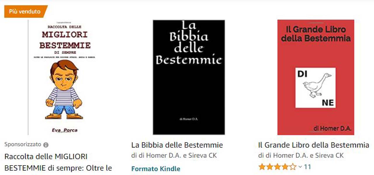 Grazie al bonus cultura, su Amazon è possibile acquistare svariati manuali, tra cui anche uno (e più) di bestemmie. Sono numerosi i volumi dai titoli (e non solo) alquanto discutibili e che, come rammenta Il Mattino nell’edizione online, godono degli incentivi del governo. Su Amazon certamente si tende a fare molta confusione al punto da confondere la blasfemia e inserirla nella categoria “satira”. Addirittura il libro “Raccolta delle migliori bestemmie di sempre” è finito al primo posto della categoria satira sul celebre colosso dell’e-commerce, ma a tallonarlo ci pensa anche il gettonato “Il grande libro della Bestemmia”. La vera anomalia consiste però nel fatto che tali volumi rientrino al pari di molti altri tra quelli acquistabili con i Bonus Cultura e i Bonus Carta del Docente. Ciascuno di questi discutibili volumi dedicati al meglio della bestemmia sono inoltre affiancati da una descrizione certosina e da far rabbrividire: “Vuoi diventare un perfetto miscredente? Questo è il libro che fa per te! Grazia il Signore bestemmiandolo al meglio, compra questo libro!”.