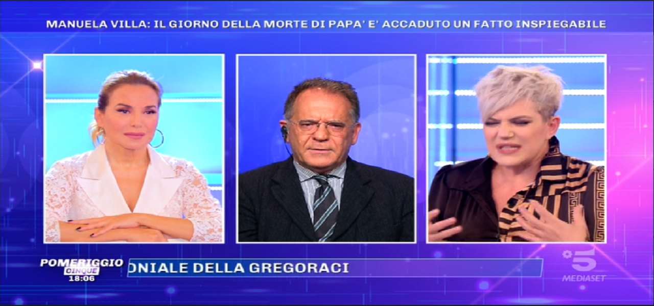 Si parla di paranormale nel salotto di Pomeriggio 5 con ospiti credenti e scettici sull’argomento. A crederci è sicuramente Manuela Villa che racconta a Barbara D’Urso di alcune particolari sensazioni. “Io ho la sensazione di essere accarezzata spesso. Sento proprio il contatto, una sensazione nell’aria e provo una sensazione di benessere… penso sia mia madre.” ha esordito la cantante, figlia di Claudio Villa. Ed è proprio su suo padre che si basa il particolare racconto che fa subito dopo nel salotto di Canale 5. Manuela ricorda di come poco prima della morte di Claudio percepisse sensazioni molto sgradevoli: “Per un mese intero sentivo sensazioni molto forti, come se dovesse accadere qualcosa di tragico a me.” ha dichiarato la Villa.