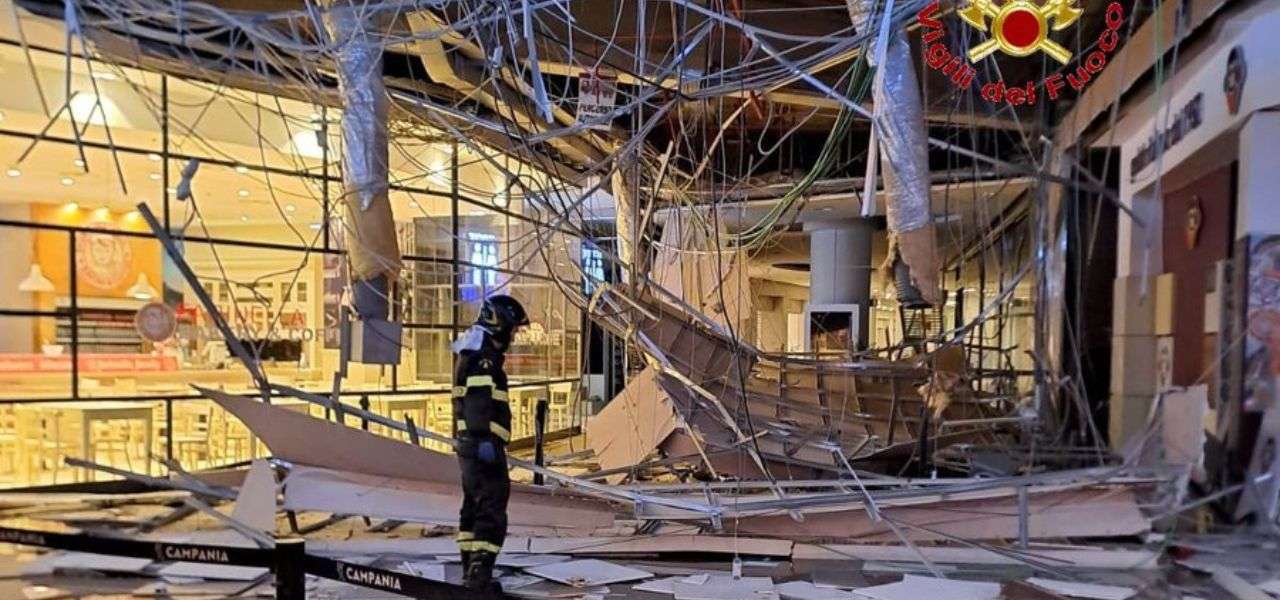 A Marcianise crolla il tetto del Centro commerciale Campania: non risultano esserci feriti mentre si ipotizza che le cause siano legate ad un tendino del controsoffitto