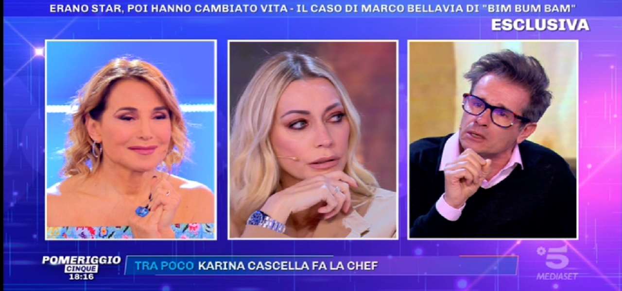 Marco Bellavia è uno degli ospiti della nuova puntata di Pomeriggio 5. Il volto che ha fatto la storia di Bim Bum Bam oggi ha una vita molto diversa, lontana dai riflettori. Il successo di anni fa viene raccontato attraverso un filmato che si conclude con le immagini di Bellavia insieme a suo figlio, foto che lo lasciano in lacrime. “Mi commuovo. – ammette lui in studio, e piega – Quando vedo mi figlio con me mi commuovo tantissimo. Io ho dedicato tutto questo tempo, lui ha 13 anni, tutti li ho dedicati a lui. E tutto questo tempo vale più di qualsiasi euro, perché il tempo è prezioso e non ritorna, mentre i soldi prima o poi ritornano e torneranno anche a me”.