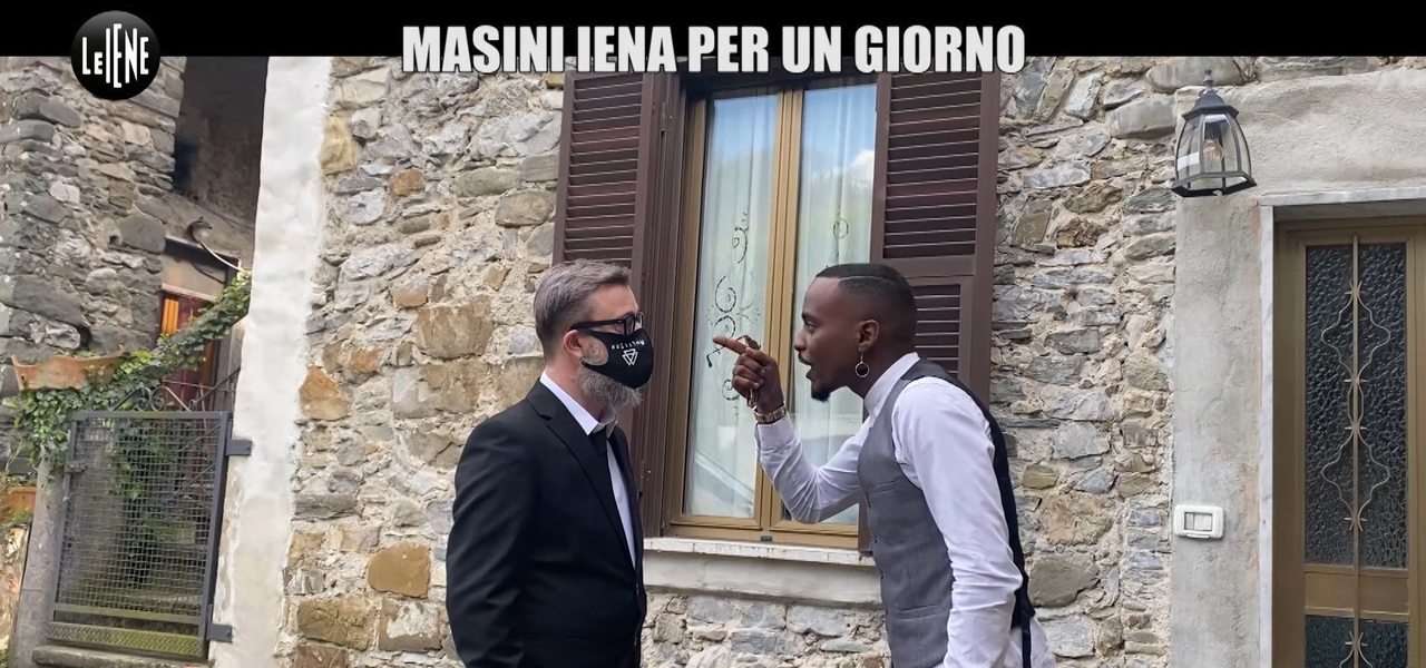 Le Iene e Marco Masini si appostano per controllare l’incontro tra la fan e il truffatore, un ragazzo di colore, che si spaccia per il coreografo di Masini: il cantante ascolta tutto a distanza tramite le cuffie. Il truffatore però riesce a scappare: Le Iene fanno credere a Masini che nello zaino con i soldi ci sia il GPS e si mettono a inseguire il ladro. Raggiungono una casa, dove un paio di energumeni chiedono di spegnere le telecamere. Poi arriva il truffatore che svela il motivo del suo odio per Marco Masini: “Tu di me non ti ricordi perché ero bambino. Ma tu 10 fa anni sei stato con mia mamma”. Il cantante però non si scompone e risponde: “Io però a lei non ho detto di essere Al Pacino, tu invece dici che sei Marco Masini è questa la differenza”. La tensione sale, Masini e le Iene scappano in macchina ma vengono inseguiti dalla gang armata di bastone. A quel punto Corti rivela come stanno le cose: “È uno scherzo de Le Iene”. Clicca qui per vedere il video dello scherzo a Marco Masini