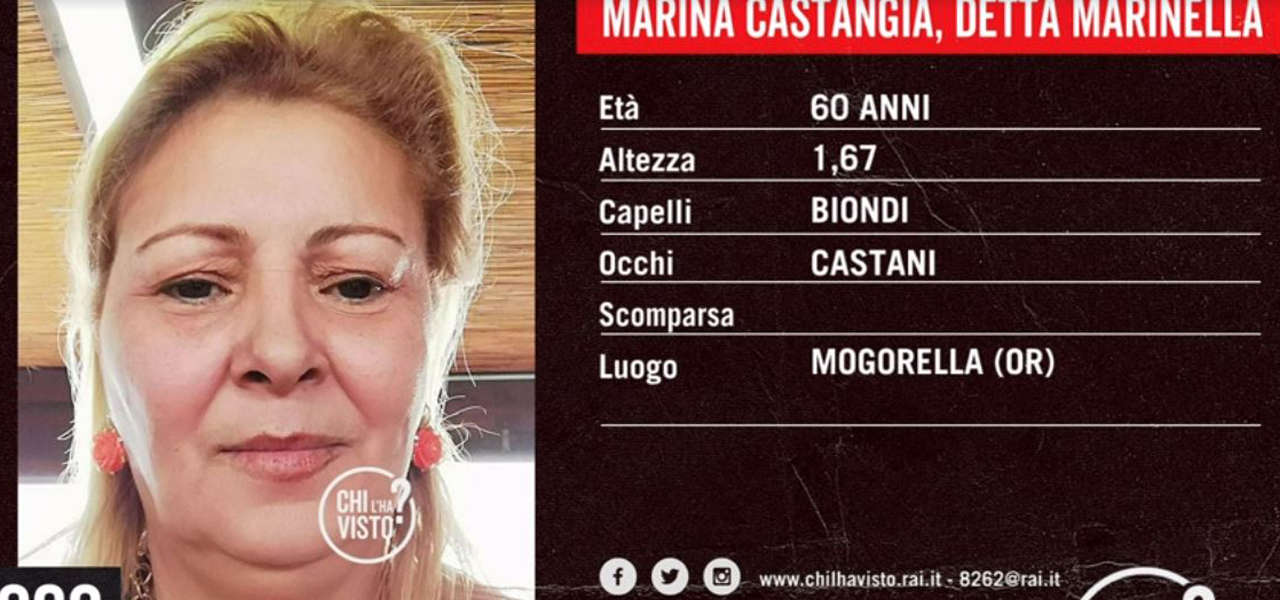 C’è grande apprensione per la scomparsa di una donna, Marina Castangia, una mamma sessantenne della quale si sono persi i contatti dalla zona di Mogorella, in provincia di Oristano. Del caso torna ad occuparsi oggi la trasmissione Chi l’ha visto, che già nelle precedenti puntate aveva acceso i riflettori sul giallo con un collegamento dalla Sardegna. Marina, detta Marinella, vive con il compagno a Mogorella ma ogni volta che viveva un periodo di grande difficoltà era solita andare a Cabras, suo paese di origine nonchè il luogo dove lo scorso 15 febbraio è stata vista per l’ultima volta dal fratello Antonio. Da quel momento in poi non è più riuscito a contattarla ed il suo cellulare risulterebbe spento. Proprio il fratello, molto preoccupato, si era rivolto alla trasmissione di Rai3 spiegando di non vedere più la sorella da circa tre mesi. Una cosa molto strana anche alla luce del rapporto molto stretto che c’è tra loro due. “Eravamo molto amorevoli tra di noi”, ha spiegato l’uomo, “è molto strano che non si sia fatta più sentire con me”.