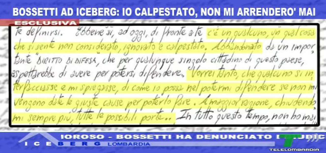 MASSIMO BOSSETTI, LA NUOVA LETTERA DAL CARCERE