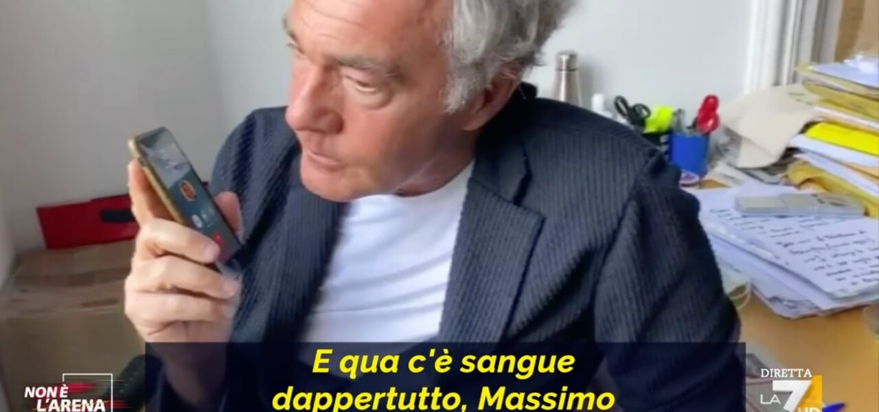 Massimo Giletti a Non è l’Arena ha svelato come ha appreso la notizia dell’arresto di Fabrizio Corona. «Giovedì io ricevo una telefonata. Ero in redazione ed ero stato avvisato della situazione. La mamma Gabriella e Fabrizio erano al telefono, sentite», ha detto il conduttore. Così ha mandato in onda la telefonata che ha avuto con l’ex re dei paparazzi e la madre, che ha pensato bene di riprendere con le telecamere. «Eh lo so, un’altra fatica enorme», ha esordito imbarazzato il conduttore. «E qua c’è sangue dappertutto, Massimo», ha replicato invece la mamma di Fabrizio Corona. «Mi spiace», è riuscito solo a dire il conduttore.