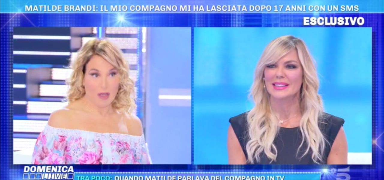 La storia di Matilde Brandi al centro della puntata di oggi di Domenica Live, dopo essere stata lasciata dal marito con un sms. Proprio al programma di Barbara d’Urso qualche anno fa era stata ospite insieme al marito Marco Costantini, padre delle sue bambine. “E’ stato un grande amore ma lo sarà per sempre”, ha esordito. Oggi Matilde si dice più serena: “Sto metabolizzando questo piccolo grande lutto”, ha aggiunto. Marco secondo le sue parole, non voleva facesse il Grande Fratello Vip. Dopo il reality “era molto freddo” e lei ha subito percepito che c’era qualcosa che non andava. La Brandi ha ammesso di esserci rimasta male per quella freddezza e di non aver dormito insieme. Dopo due giorni è stata lasciata con un sms: “Non era uno scherzo e da lì sono entrata in un tunnel molto brutto ma adesso voglio ricominciare da me”.