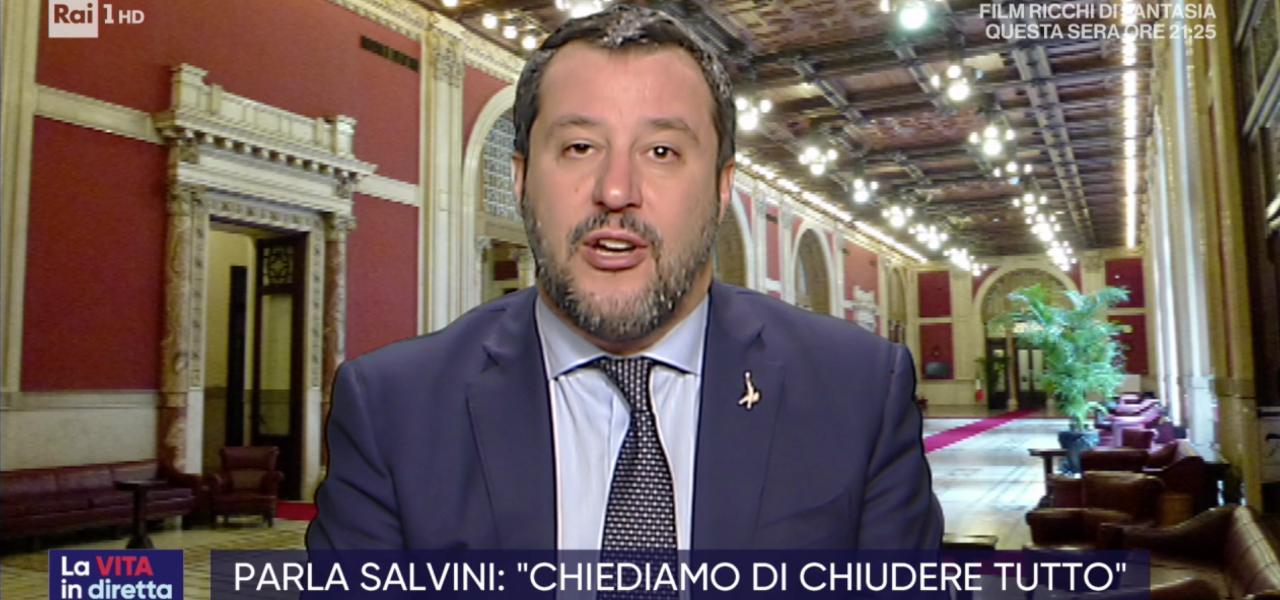 Matteo Salvini a La Vita in Diretta sul Coronavirus: “Chiudiamo tutta l'Italia”. E attacca l'Unione europea: “Pensa al Mes”. Invece sulle abitudini cambiate in famiglia dopo le restrizioni..