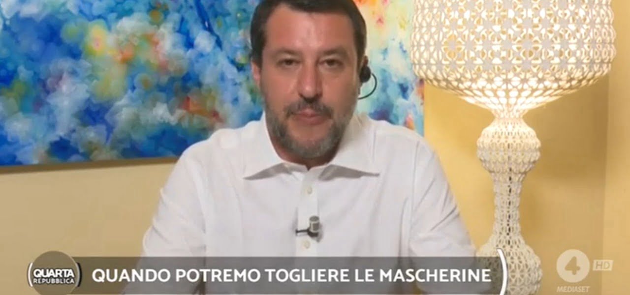 Matteo Salvini, leader della Lega, è intervenuto nella serata di ieri, lunedì 21 giugno, nel corso della trasmissione “Quarta Repubblica”, in onda su Rete Quattro e condotta da Nicola Porro. Inevitabilmente, il primo commento non poteva che essere relativo al parere del Cts sulle mascherine (via l’obbligo all’aperto da lunedì 28 giugno): “Sono contento. Questa è una risposta ai soloni come Letta, che ha avuto il pessimo gusto di dire che con Salvini al Governo ci sarebbero stati centinaia di migliaia di morti, come in Brasile”.