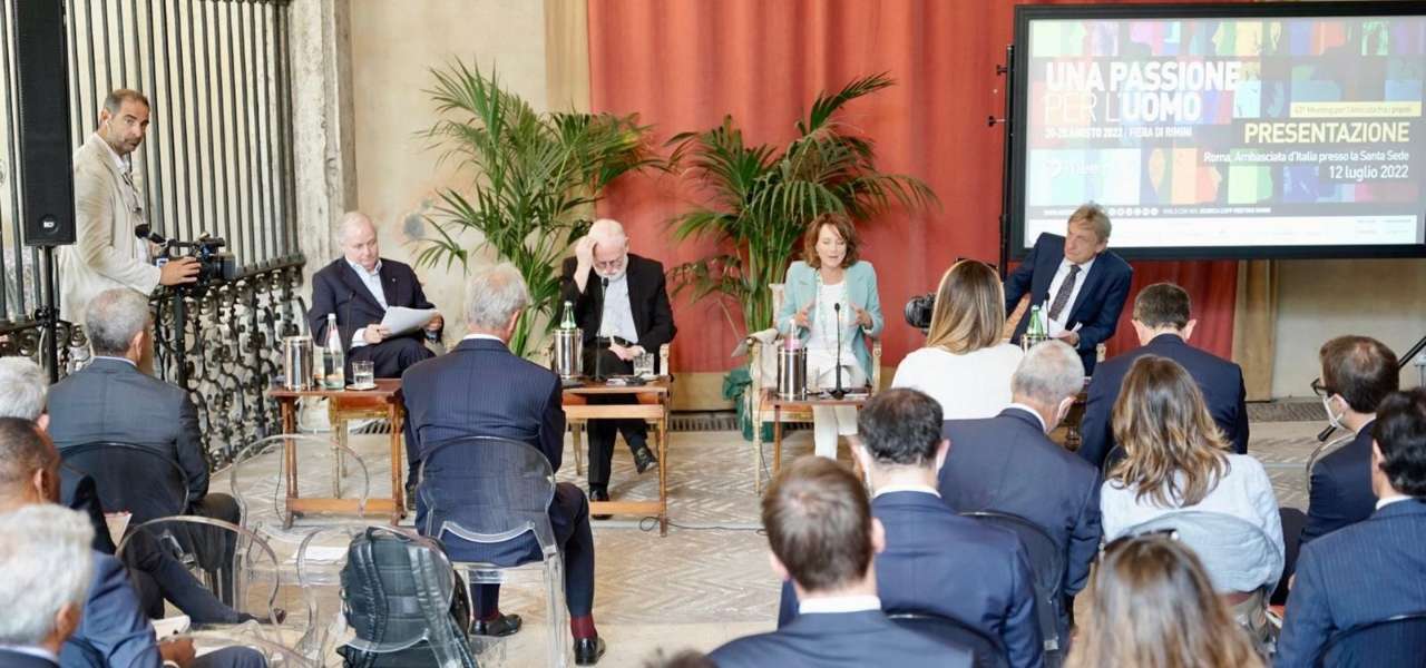 andrà in scena la 43esima edizione del Meeting di Rimini per l’amicizia fra i popoli: con il titolo centrale tratto da una citazione di Don Luigi Giussani (al Meeting 1985), “Una passione per l’uomo”, il Meeting 2022 è stato presentato stamane all’Ambasciata della Santa Sede in Italia alla presenza del Presidente della Fondazione Meeting per l’amicizia fra i popoli, Bernhard Scholz. Presenti anche monsignor Paul Richard Gallagher, Segretario per i Rapporti con gli Stati della Santa Sede, Elena Bonetti, Ministra per le Pari Opportunità e la Famiglia e Stefano Lucchini, Chief of Institutional Affairs and External Communication Officer, Intesa Sanpaolo. «In questa situazione segnata dalla guerra contro l’Ucraina, con dolori inimmaginabili soprattutto per bambini e donne e con conseguenze ancora imponderabili per il contesto geopolitico, ospiteremo testimonianze dall’Ucraina e dalla Russia, dando spazio anche alle comuni radici culturali europee», ha spiegato Scholz aprendo i lavori di presentazione alla kermesse ricca anche quest’anno tavole rotonde, mostre, spettacoli e iniziative culturali,