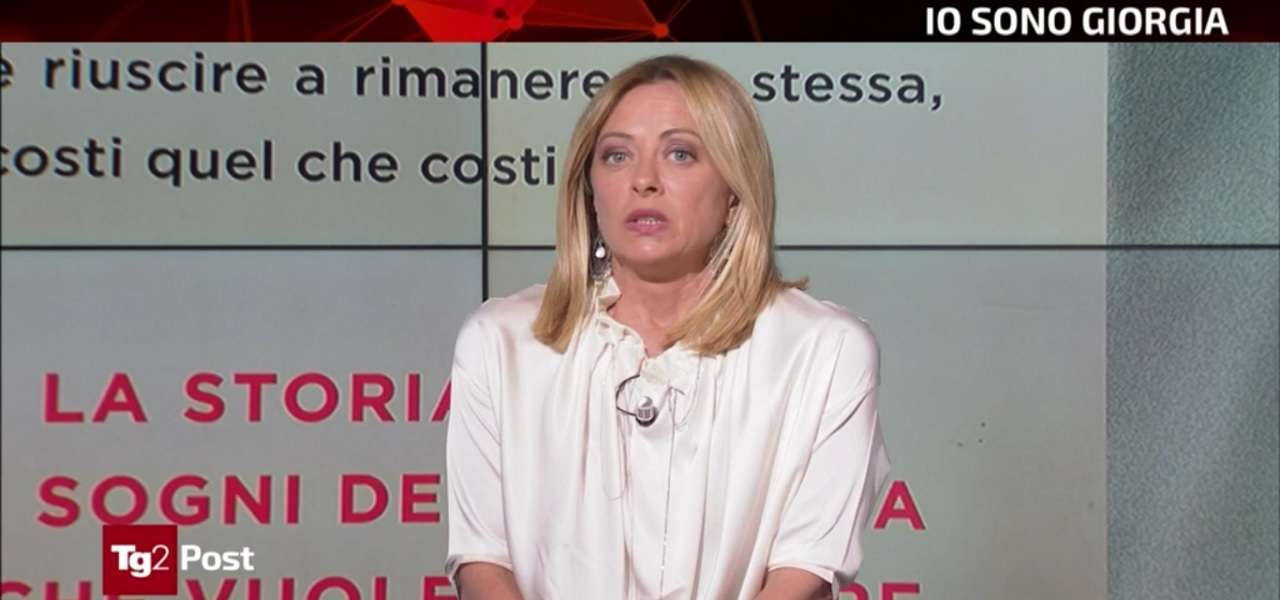 Giorgia Meloni a tutto tondo ai microfoni di Tg2 Post. La leader di Fratelli d’Italia ha parlato del suo libro e del suo modo di vedere la politica: «La politica deve essere visione. Ci sono due modi di fare politica: c’è chi prende voti per fare politica e chi fa politica per prendere voti. Chi prende i voti per fare politica ha una visione e deve riuscire a convincere i cittadini che la sua visione è corretta, chi invece fa politica per prendere i voti invece di guidare la società, la rincorre. Il M5s ne è un esempio, vuol dire non credere a niente».