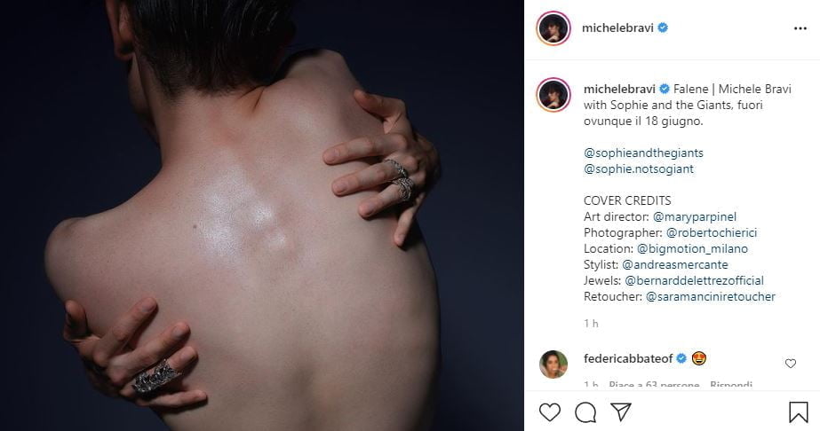 Il post del cantautore perugino è diventato nel giro di breve tempo virale, tenendo conto che ha raccolto circa 35mila like e numerosi commenti, fra cui anche quelli di personaggi del mondo dello spettacolo come Elodie, Federica Abbate, Matteo Romano, ovviamente gli stessi Sophie and the Giants, ma anche Chiara Galiazzo, Virginia Di Giorgio, Davide Napoleone e molti altri ancora. Per Michele Bravi si tratta quindi del secondo singolo per questo anno, dopo l’uscita di “Mantieni il bacio” (per cui è stato realizzato anche un videoclip) dello scorso gennaio, senza dimenticarsi della collaborazione con Annalisa “Il mondo prima di te”.