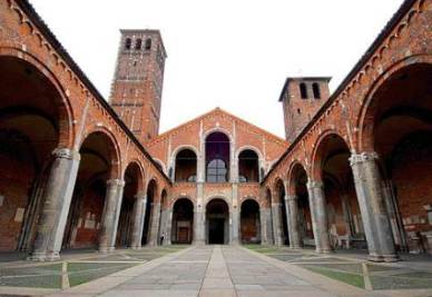 Sant’Ambrogio è forse la più bella chiesa di Milano, certo la più significativa nella storia della città. Se ne accorse a suo tempo il toscano Giuseppe Giusti, che trovandosi a Milano nel 1845 ospite di Manzoni, ne parla in una nota poesia indirizzata a un indeterminato funzionario di polizia. Le ottave di endecasillabi rendono bene l’andamento popolare della composizione, a metà tra lo scherzoso e il commosso.