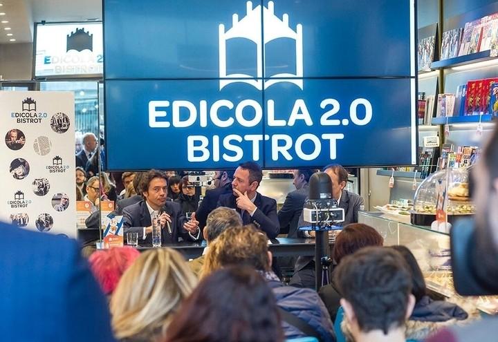 Per coglierlo è bastato fare un salto alla Milano Digital Week 2018, nel cuore di City Life, presso l’Edicola 2.0 Bistrot, uno spazio innovativo in cui convivono, in perfetta sinergia, edicola e bar. All’ingresso campeggia uno scooter elettrico della Mimoto, giovane start up, tra gli sponsor di DigiTalk, che offre un servizio di motosharing (anche qui, il connubio è tra bene fisico e servizio virtuale). All’interno, sulla sinistra, lungo l’intera parete, fanno bella mostra quotidiani e riviste, come in un’edicola tradizionale. Sulla destra, invece, il bancone di un bar, molto elegante e accogliente. Sullo sfondo un mega-schermo per collegamenti in streaming.
