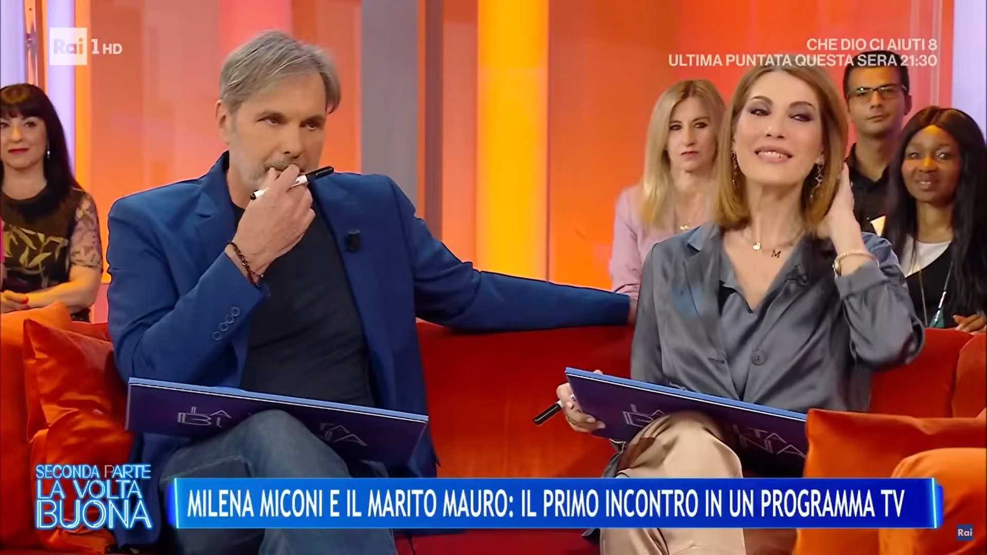 Milena Miconi col marito Mauro Graiani a "La Volta Buona" (YouTube, Rai, 2025)