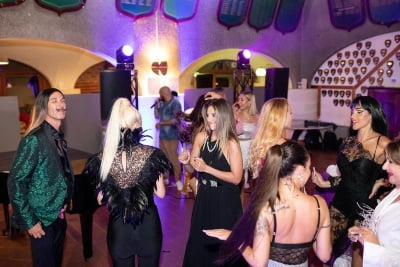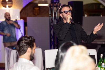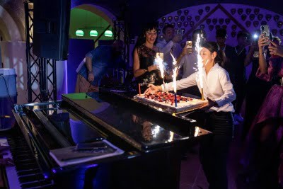 Dopodiché, Mirko Gancitano e tutti gli invitati si sono trasferiti presso il Bistrot Franciacorta, il ristorante di uno dei golf club più belli d’Italia, all’interno del quale si è svolta la grande festa, fatta di convivialità, musica e performance al pianoforte prima di Guenda Goria, teneramente abbracciata dal suo Mirko, poi di Alex Belli, che, in men che non si dica, si è trasformato nel mattatore della serata, intonando con Gancitano alcuni brani di Lucio Battisti e di Achille Lauro. Presente anche Francesco Chiofalo, che ha cantato “Tutto il resto è noia” di Franco Califano, mandando in delirio gli ospiti.