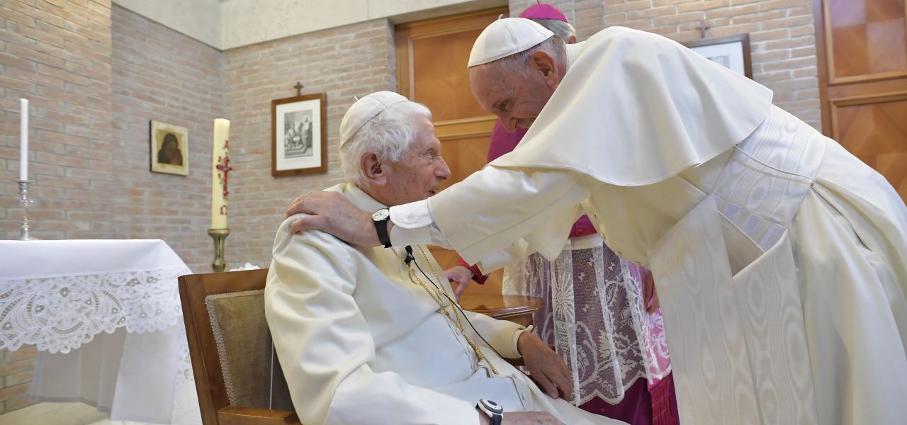 Papa Emerito Benedetto XVI con Papa Francesco (LaPresse)