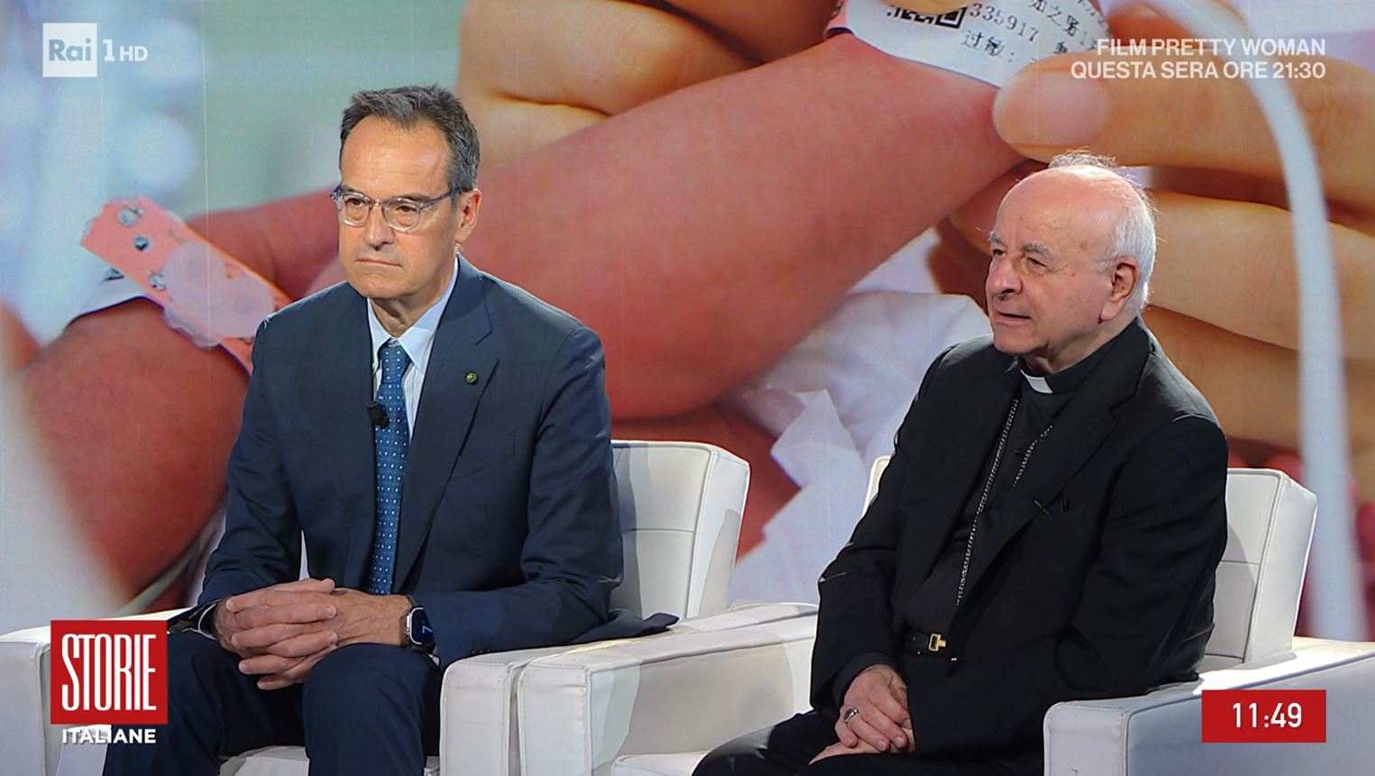 L'intervista di Monsignor Vincenzo Paglia negli studi di Storie Italiane, le parole sulle guerre, le cure palliative e Papa Francesco