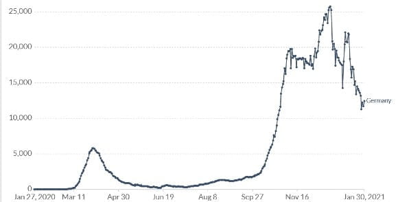 Figura 2: Nuovi casi di contagio da Covid-19 in Germania (dati mediati su 7 giorni)