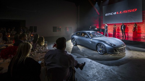 Eccola: è la nuova quattro posti Ferrari. Ad ammirare in anteprima il GTC4Lusso, con il suo 12 cilindri mozzafiato, accompagnato da violinisti, ballerini e persino un controsionista, il jet set riunito al “The red door”, nel quartiere più alla moda di Los Angeles.