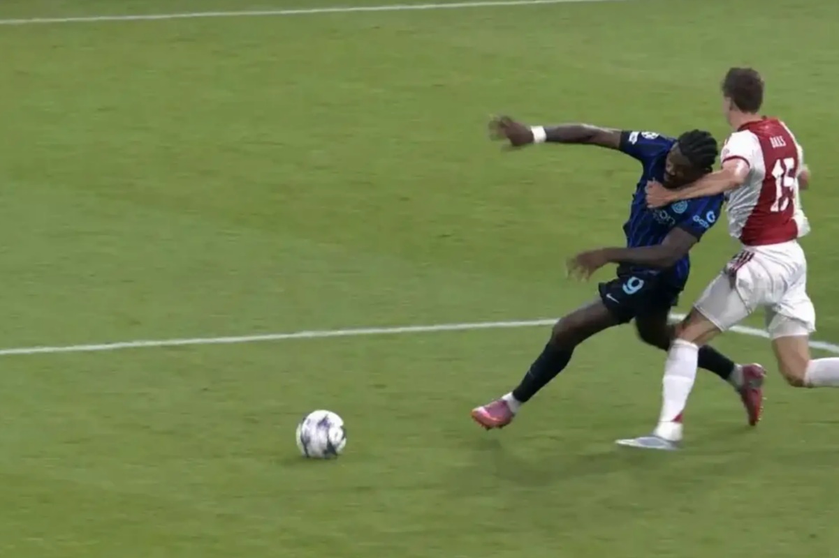 L’episodio principale della moviola di Ajax Inter è però il calcio di rigore che al 34’ minuto viene concesso ai nerazzurri per una netta trattenuta di Baas su Thuram che vedendosi superato sul suo lato sinistro si aggrappa all’attaccante francese buttandolo a terra in maniera fallosa. Oliver vede il contrasto e concede il rigore ma viene richiamato dal Var per una precedente trattenuta da parte del giocatore nerazzurro sulla maglia del difensore che quindi secondo il direttore di gara ha favorito il giocatore nel prendere il possesso del pallone che ha portato al penalty.