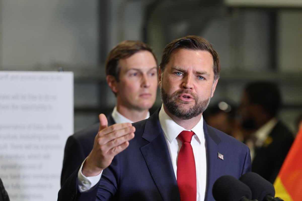 Il vicepresidente americano JD Vance in Israele. Dietro di lui, Jared Kushner (Ansa)