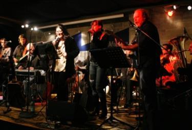 Abbiamo una particolarissima front-line composta tutta di donne: Silvia Manco è una specie di nipotina di Oscar Peterson, bisogna ascoltare che bel fraseggio sa espimere con il suo quartetto, spesso in cartellone all’Alexander Platz o al Gregory’s di Roma.Cristiana Polegri, sassofonista polistrumentista, ha anche una voce incredibile, capace di passare dalle tonalità sommesse di “Bindi in jazz”, un suo interessante disco dedicato al cantautore genovese, ai sovracuti del gruppo Fluidorosa. Piera Pizzi attualmente è partner fissa delle tourneè di Ron, e ha una voce dalle venature “nere”. Daniela Velli ha lavorato negli States con diverse big band. Tornata in italia, noi l’abbiamo strappata alla sua vocazione di madre… visto che sa oscillare tra Aretha e Ella… Ma anche gli altri non scherzano: Derek Wilson sfoga la sua anima jazz dopo gli impegni con Venditti e Zero, Alessandro Valle suona abitualmente la pedal steel guitar con De Gregori, Michael Supnik – diplomato a Boston – suona nel Jazz Show di Lino Patruno, oltre che in in gruppi suoi e alla Rai, Francesco Puglisi è uno dei pochi bassisti italiani sempre ricercato dai gruppi stranieri, Danilo Cartìa e senz’altro il miglior banjoista italiano a 5 corde… sempre invitato a suonare negli States e in Messico. Enrico Cresci, chitarrista jazz, concertista, è l’arrangiatore della band: grande amico del trombonista leader dei Blood Sweat and Tears che vive a Roma da anni ( e si sente…).