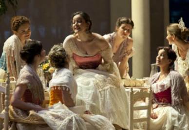 Muti accarezza con cura la partitura, affidata all’Orchestra Giovanile Luigi Cherubini (il coro è il Philarmonia Chorus Vienna). La regia di Emilio Sagi, le scene di Daniel Bianco e i costumi di Jesùs Luiz ci portano in un mondo quasi viscontiano (quello delle celeberrime Nozze di Figaro prodotte per il Teatro dell’Opera di Roma negli Anni Settanta e riprese con successo negli Anni Novanta). Un mondo, quindi, non di farsa ma di “commedia per adulti” densa di significato etico-morale (i malintenzionati sono puniti dalla partitura prima che dal libretto).