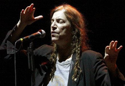 La presenza di Patti Smith all’udienza del Papa ha colpito molti di coloro che seguono la musicista di Wave ed Easter. Molti di noi che la amano hanno appreso la notizia con stupore anche se, onestamente, la cosa – come si suol dire – “ci sta”. Ciononostante quella foto esprime tenerezza e umanità  sorprendente. Lei è Patti, è la donna che ha scritto che lo sguardo e le parole di Albino Luciani l’hanno fatta sentire felice perchè l’avevano fatta sentire se stessa. E così, 34 anni dopo Wave, la Smith finisce davanti a papa Francesco, proprio il papa che rende il nome del “suo” santo, l’uomo di Assisi da cui ha preso le parole di Preghiera semplice per connotare una canzone del suo ultimo Cd. Insomma non ci troviamo di fronte ad una cosa scontata o puramente istintiva. Patti sta facendo un cammino personale, dentro a questo cammino ci sta poesia e fascinazione, entusiasmo e fede, cosi come nel passato ci sono stati tante morti e tanto alcool.