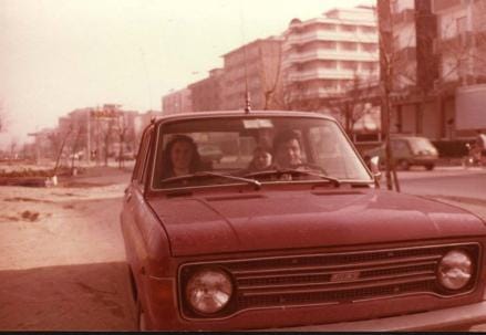 E’ una domenica del 1978 e siamo a Cesenatico. Lo so perché c’è scritto dietro alla foto, insieme alla data. E’ domenica, 19 marzo 1978, domenica delle Palme. Da tre giorni le Brigate Rosse hanno rapito Aldo Moro e sterminato i cinque uomini della sua scorta. Io e i miei genitori siamo fermi, chiusi e immobili dentro la 128 Fiat che avevamo all’epoca, e qualcuno ci fotografa da fuori. Non riesco a ricordare chi fosse, ma di certo sarà stato qualcuno che ci conosceva bene. Papà e la mamma sorridono amabilmente, come se dall’altro lato del vetro ci fosse qualcuno a loro familiare.