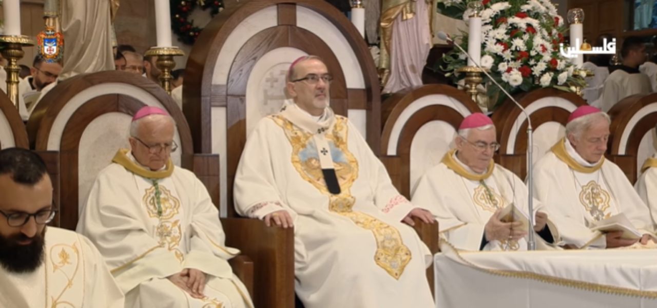 Si avvia alla conclusione la Santa Messa di mezzanotte a Betlemme, con la benedizione da parte di Sua Beatitudine Pierbattista Pizzaballa, Patriarca di Gerusalemme dei Latini nella Chiesa di Santa Caterina. Ora si recherà nella grotta della Natività, ma prima ha voluto ringraziare tutti i presenti per la loro partecipazione massiccia e piena di fede. La celebrazione non si conclude però qui: sta per formarsi una processione che porterà la bella immagine lignea del Divino Bambino, che sarà posta in corrispondenza della stella d’argento a 14 punte presente nella grotta.