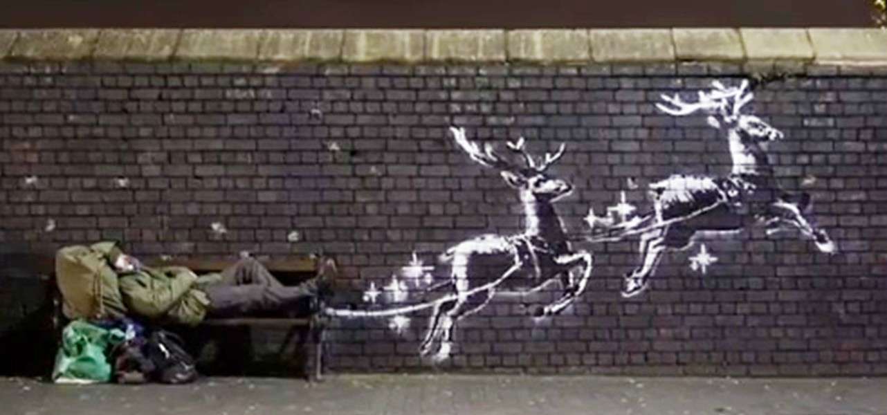 “God bless Birmingham” è l’ultimo murales di Natale dello street artist Bansky. Un’immagine che ha cambiato la vita di chi lo ha visto e del senzatetto Ryan