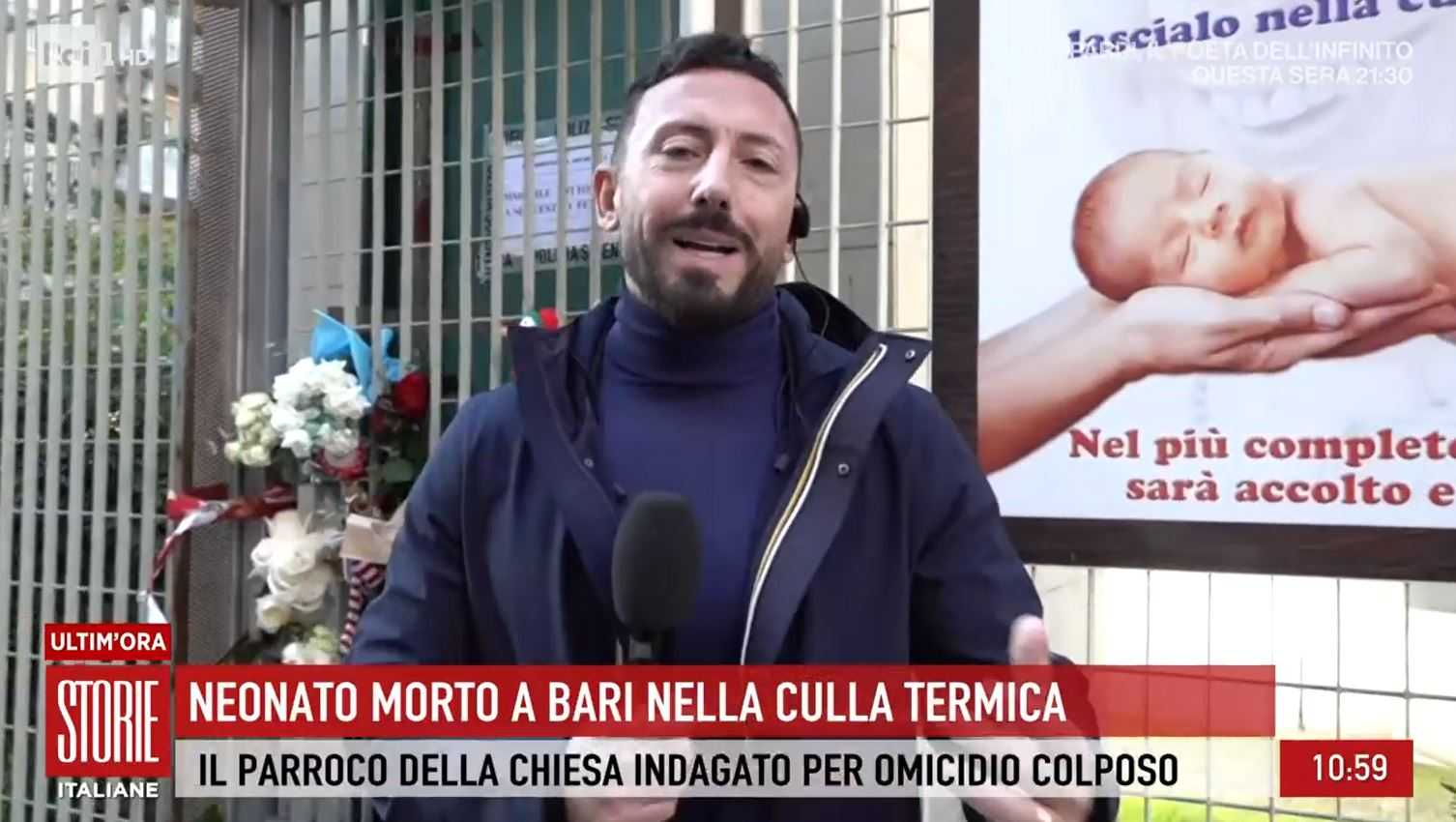 Il caso del neonato di Bari, morto in una culla termica, stamane a Storie Italiane. Nelle ultime ore, come si prospettava, è stato iscritto sul registro degli indagati don Antonio Ruccia, e il tecnico che si sarebbe dovuto occupare della manutenzione della culla, per omicidio colposo.