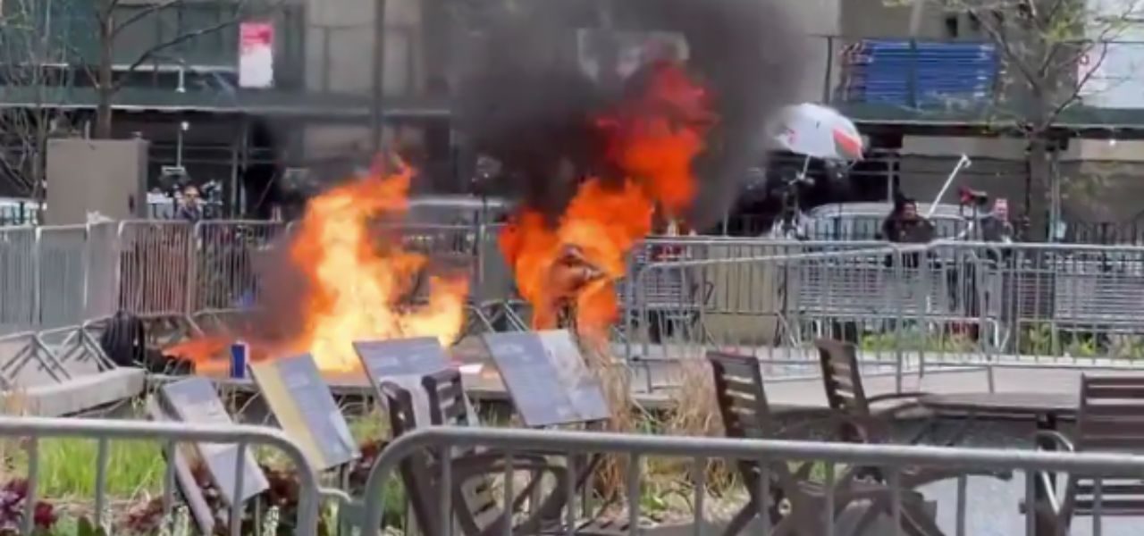 🚨 BREAKING NEWS: Man sets himself on fire at the doors of Trump’s trial in New York pic.twitter.com/Uey5kctSBR