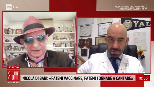 Il professore del San Martino di Genova, Matteo Bassetti, (protagonista ieri di un acceso diverbio con Simona Ventura) in collegamento con Storie Italiane, ha provato a rispondere all’artista: “AstraZeneca ha avuto vicende un po’ combattute, anche per responsabilità degli enti italiani. Speriamo che adesso le cose diventano più regolari e così Nicola Di Bari possa essere vaccinato domani, non fra un mese”.