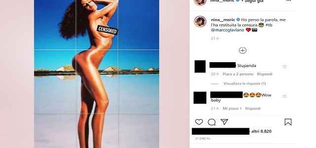 Nina Moric si mostra in tutto il suo splendore su Instagram. Di profilo, senza nulla addosso e con il seno coperto dalla scritta “censored”. La modella croata si presenta così nell’ultima foto pubblicata sul suo profilo social mandando letteralmente in tilt i fans che applaudono il fisico staturaio e l’indiscutibile bellezza. “
