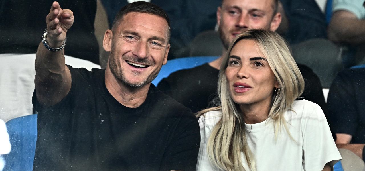 Francesco Totti e Noemi Bocchi allo stadio Ferraris per Genoa-Roma (Foto 2023: ANSA/LUCA ZENNARO)
