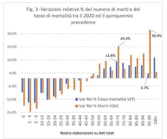 Pensare quindi che la variazione relativa del numero di morti possa rappresentare la variazione relativa del tasso di mortalità, cioè della probabilità che un individuo di una certa fascia di età abbia di morire, è sbagliato, ed il calcolo sulla fascia d’età 95-99 ne è una dimostrazione.
