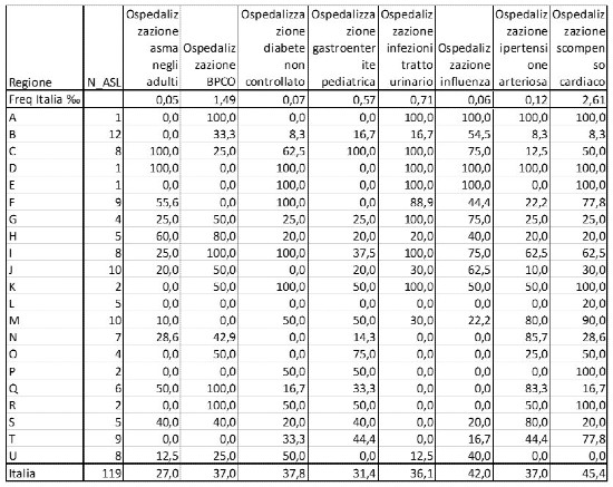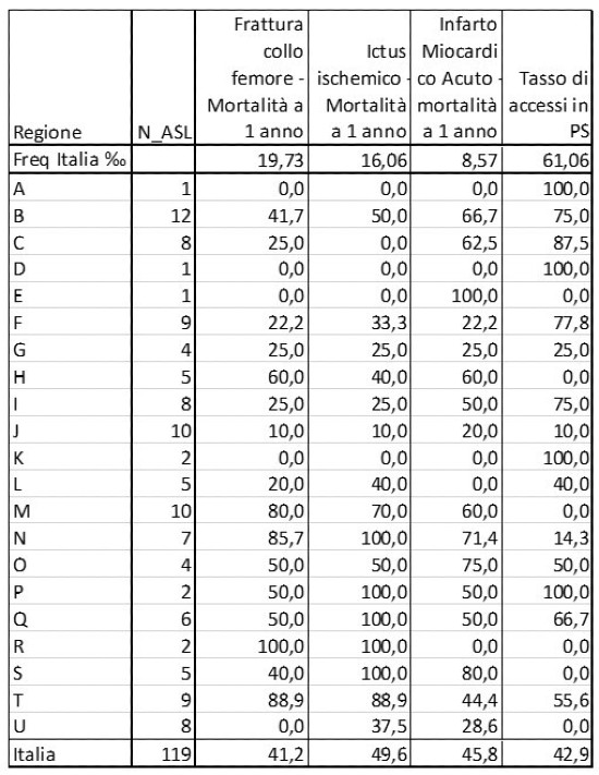 Non entriamo nel merito dei singoli indicatori discutendo del loro significato e della loro adeguatezza per valutare l’assistenza territoriale, ma affermiamo che non è una bella notizia sapere che gli esiti delle cure (così come misurati dagli indicatori che chi si occupa del Pne ha selezionato) ci restituiscono l’immagine di un paese che non garantisce a tutti la stessa efficacia della azione di cura. E questa efficacia non solo è differente tra regione e regione (e per evitare classifiche in questo scritto si è esplicitamente scelto di oscurare l’identificazione territoriale) ma anche all’interno della stessa regione tra ASL differenti.