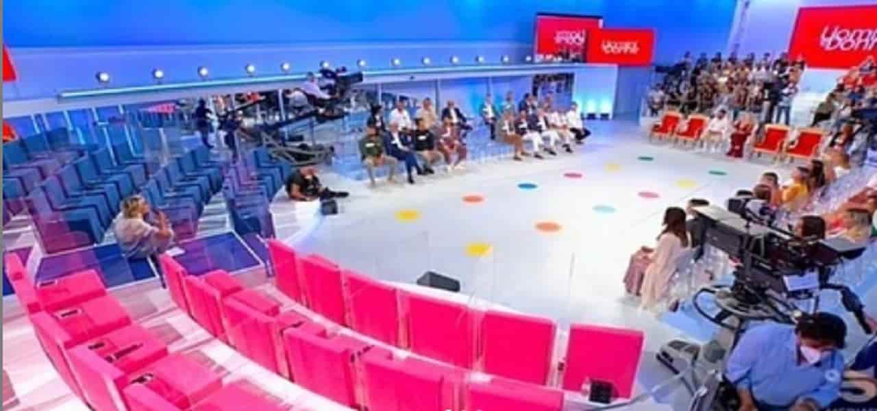 Nuovo studio per Uomini e Donne per le esigenze dovute al Covid 19. Per garantire la sicurezza di tutti i partecipanti e per rispettare il distanziamento sociale, necessario per contenere i contagi, sono stati utilizzati dai plexiglas. Oltre alle sedie di Gianni Sperti e Tina Cipollari, inoltre, ci sono le quattro sedie che accoglieranno i quattro nuovi tronisti di Uomini e Donne, due uomini e due donne. Accanto a Maria De Filippi, ci sono una serie di sedie rosa sulle quali si accomoderanno le corteggiatrici dei nuovi tronisti e, dall’altra parte, le sedie blu su cui si siederanno i corteggiatori dei nuovi tronisti. Prevista anche una passerella, costruita intorno alla luce, che consentirà l’ingresso in studio di tutti i protagonisti. L’ultima novità rappresenta il led che è centrale e sul quale vengono trasmessi i vari filmati.