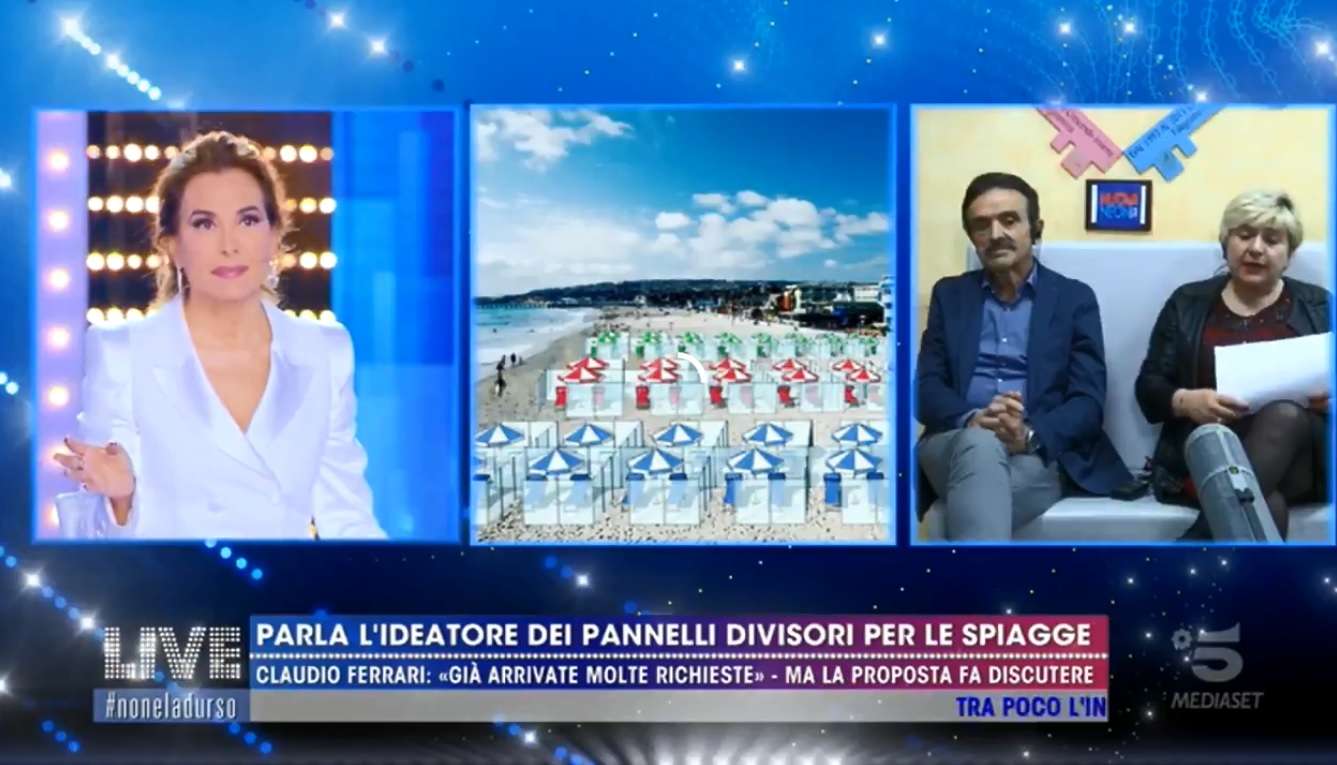 Claudio Ferrari e sua moglie sono gli inventori degli ormai famosi pannelli in plexiglass progettati per garantire la sicurezza nelle spiagge la prossima estate. Secondo gli ideatori, l’installazione dei pannelli sarebbe una buona soluzione per contrastare il coronavirus e al tempo stesso per mantenere a galla le attività balneari. Durante il collegamento il giornalista Gianluigi Nuzzi esprime parecchie perplessità in merito, ma la coppia replica con forza. Claudio Ferrari non pensa che i pannelli possano creare il temuto ‘effetto forno’: “Non è affatto vero!. Il pannello in plexigass è un pannello fatto appositamente con protezione per raggi ultravioletti e non riflette il raggio all’interno per quanto riguarda il calore. Il box è aperto e staccato dalla sabbia”, prosegue Ferrari. “Pertanto l’aria circola da sotto e ha anche una porta di ingresso che fa circolare l’aria”. A dargli manforte la moglie, che ribadisce l’efficacia della loro proposta, pur riconoscendone alcuni limiti: “Il nostro un prodotto in Plexigass a protezione raggi uv, il calore passa molto meno. Se fuori ci sono 35 gradi, dentro ce ne saranno 38. Non è una soluzione geniale ma una soluzione che consente di aprire le attività balneari. Dietro queste spiagge ci sono molte altre attività come ristoranti o bar”.