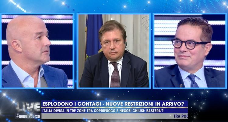 Fra i tanti ospiti della puntata di ieri sera di Live non è la D’Urso, anche il viceministro della salute, Pierpaolo Sileri, e il noto giornalista di Quarto Grado, Gianluigi Nuzzi. Si parla dell’emergenza covid in Italia, e il collega di Rete 4 ha qualcosa da dire al governo: “Ci sentiamo presi in giro – esordisce lo scrittore – avete fatto l’app Immuni e oggi arrivano le segnalazioni del 23 ottobre, la tracciabilità è fallita, avete detto di rafforzare i pronto soccorso… io non so lei dove vive ma in Campania è un disastro, c’è stata una signora che ha aspettato 26 ore prima di entrare al pronto soccorso covid positiva di 78 anni, avete la rivolta dei malati oncologici perchè non possono curarsi perchè non sapete distinguere ingresso covid no covid, avete fatto applicazioni sull’economia che non è un lockdown rosso, grigio… ma è tricolore, prendete in giro le persone e non fate le cose essenziali, come, interrompere gli sfratti, bloccare le cartelle esattoriali”. E ancora: “Non avete idee di cosa sta succedendo negli ospedali, dovevate proteggere le Rsa e stanno morendo ancora gli anziani, stiamo perdendo le nostre radici, i commercianti si sentono presi in giro” .