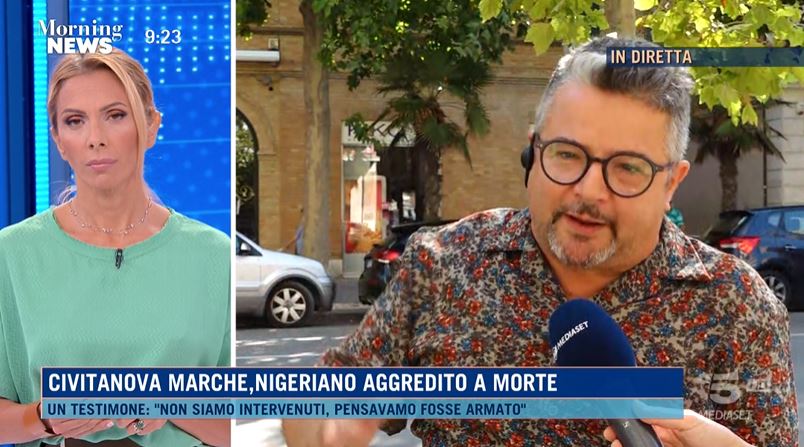 A Morning News grande approfondimento sulla tragica vicenda di Civitanova Marche dove l’immigrato Alika è stato ucciso a mani nude da un uomo in strada e in pieno giorno. Il programma di Canale 5 ha intervistato Mariano, un testimone oculare che ha assistito all’intera tragica scena: “Ero seduto su una panchina vicino alla fermata dell’autobus, stavo aspettando il pullman per andare a lavorare e ad un certo punto ho sentito delle urla, ma non gli ho dato peso, era pomeriggio, erano le 14:00 e non c’era tanta gente come dicevano; inoltre non è vero che la gente non è intervenuta. Quella voce che si sente nel video “così lo ammazzi” è la mia, e io mi sono messo in contatto con il centro unico delle emergenze che sono intervenuti prontamente”.