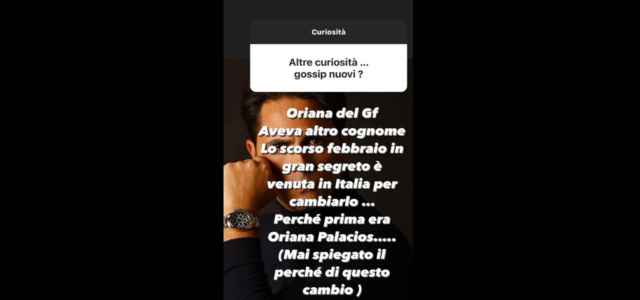“Oriana del Grande Fratello aveva un altro cognome” – scrive Biagio D’anelli. “Lo scorso febbraio è venuta in gran segreto a Roma per cambiarlo perchè prima era Oriana Palacios… Mai spiegato il perchè di questo cambio”, aggiunge.